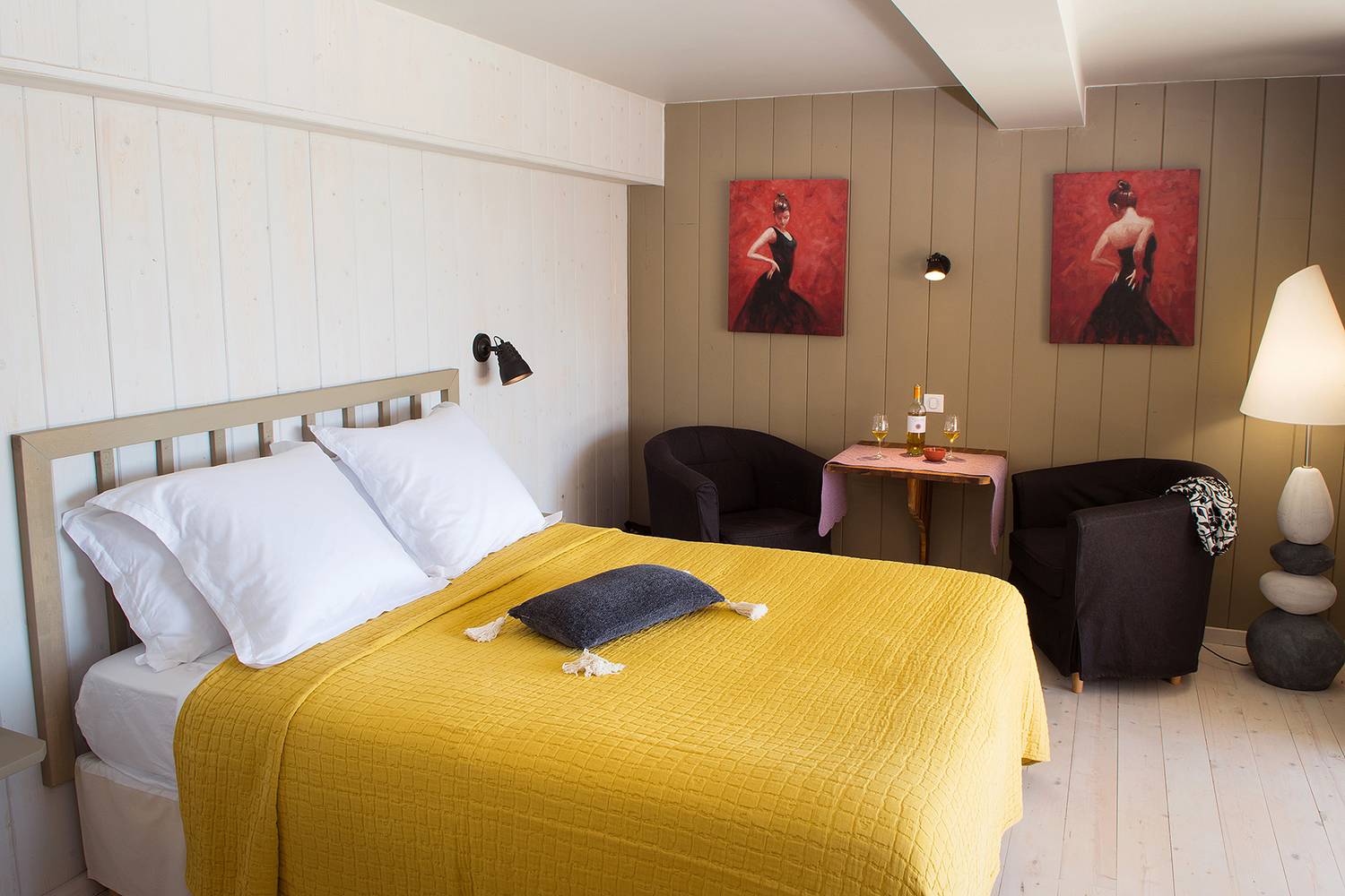 Équipée d’une literie king size, linge de lit en satin coton, salle d’eau avec grande douche à l’italienne, wc séparé, chauffage et climatisation, mini bar, machine à expresso et plateau bouilloire dans un espace de 27m2. Vous pouvez compter sur la Wifi pour rester connecter ou pas…